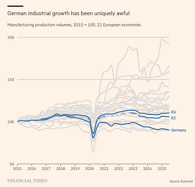 첫 번째는 급격히 변화한 지정학적 상황이다러시아는 즉각적인 위협으로 부상했고미국은 내부 위기에 빠지면서 나토의 후원국으로서 신뢰를 잃고 있다유럽은 독일을 필요로 하며독일은 산업 역량과 집단 의지를 다시 결집해야 한다그러나 산업 전반에 퍼진 위기감은 이 과정에 도움이 되지 않는다.